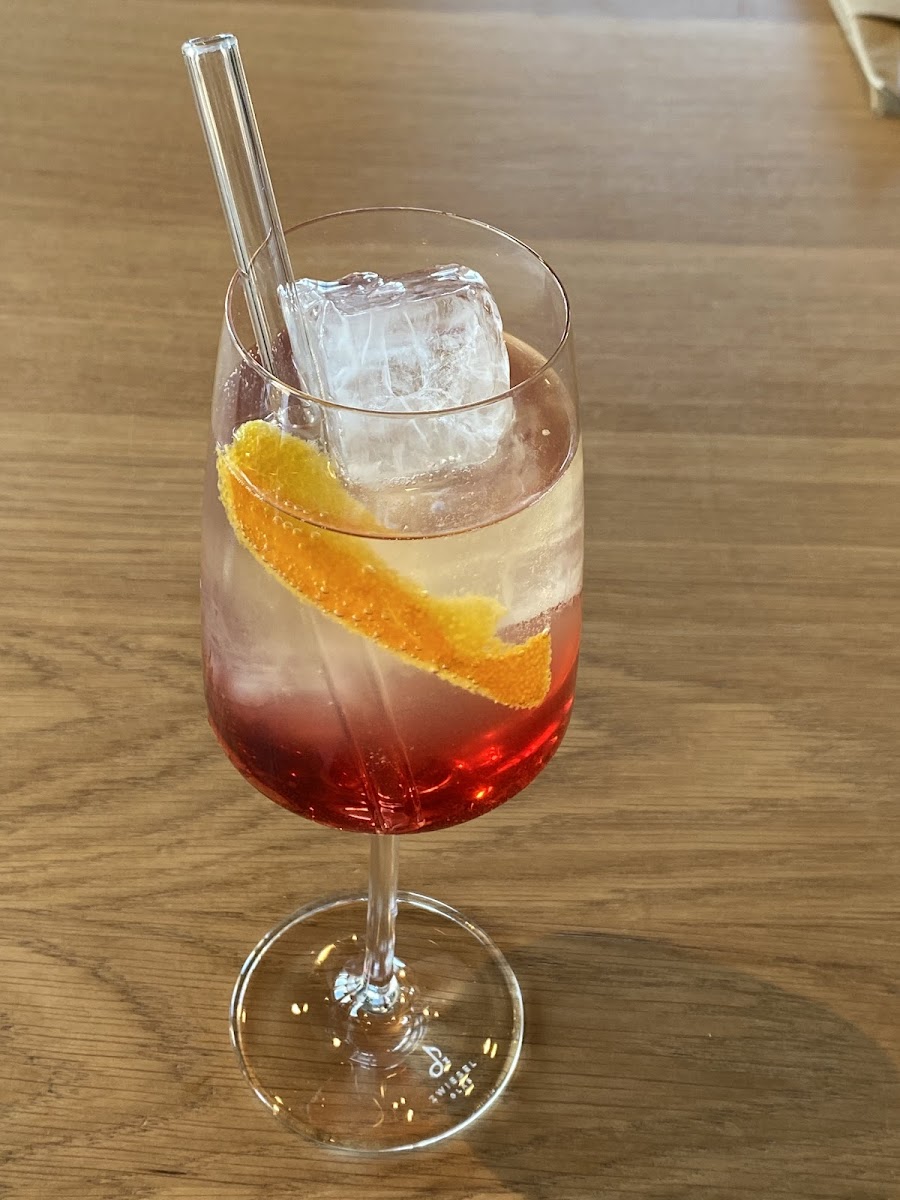 The menu offers a diverse European selection with some standout dishes like octopus, carpaccio, and classic dessert options such as tiramisu and various cakes. Coffee options including café latte and cappuccino with hints of amaretto suggest a thoughtful approach to drinks beyond just wine and cocktails. Signature cocktails like Negroni and a refreshing Aperol Spritz with lime provide lively finishes to the meal, while lighter vegan options like the Fusillone cater well to plant-based diners.